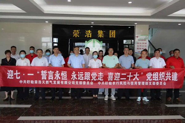值此“七一”来临之际,为深化银企合作,积极构建“资源共享、优势互补、互相促进、共同提高”的党建工作新格局,充分展现党建引领促发展的作用,践行荣浩集团“共创、共赢、共荣”的价值观,6月22日,中共盱眙荣浩天然气发展有限公司支部委员会与中共中国农业银行盱眙支行风控与信用管理部支部委员会联合开展“誓言永恒、永远跟党走、喜迎二十大”党建共建主题活动,为七一献礼。