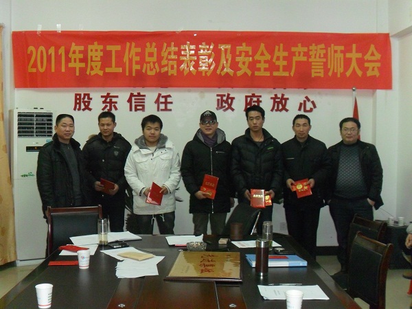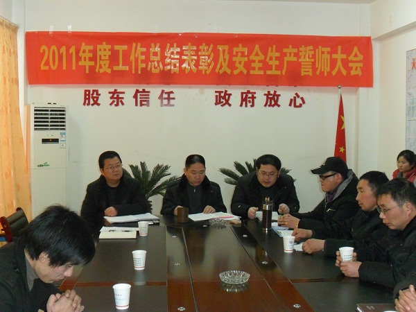 会议由李总助主持,徐副总对公司2011年的安全工作进行了全面的总结,并对2011年底开展的安全检查情况进行了通报,还对2012年安全工作作出了安排。会议对2011年度工作突出的2个先进部门和5名优秀员工进行了表彰奖励,并签订了2012年度安全生产责任状。最后,吴总对天长公司2011年度总体工作情况进行了回顾总结,对2012年工作进行了整体部署。会议始终洋溢着团结向上、鼓劲加压的热烈气氛,使大家进一步明确了目标任务,焕发了激情斗志。
