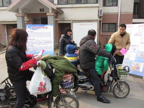 图二 安全部工作人员向小区居民发放宣传单