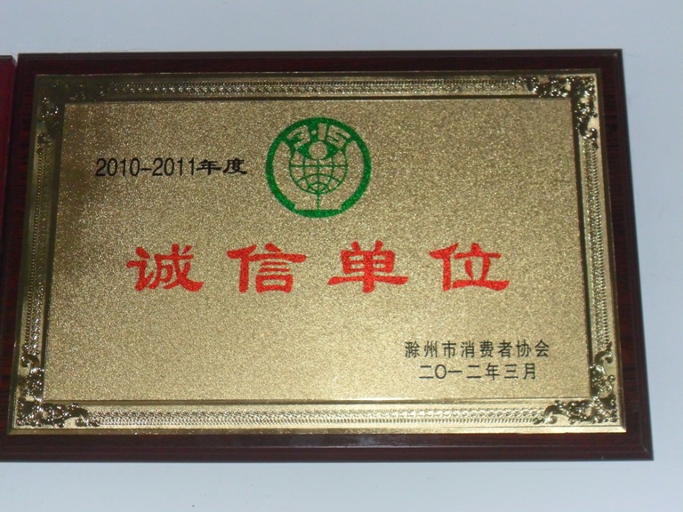 荣浩集团天长公司被滁州市消费者协会评为诚信单位