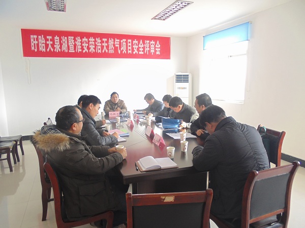 2012年12月17日,县安监局组织相关专家召开了《盱眙天泉湖天然气项目暨淮安荣浩长输管线天然气项目安全评审会》。县安监局、危化科、淮化集团、天明公司、邦驰茂元评估单位、盱眙天泉湖荣浩天然气有限公司、淮安荣浩天然气输配有限公司等部门和单位领导参加评审会。