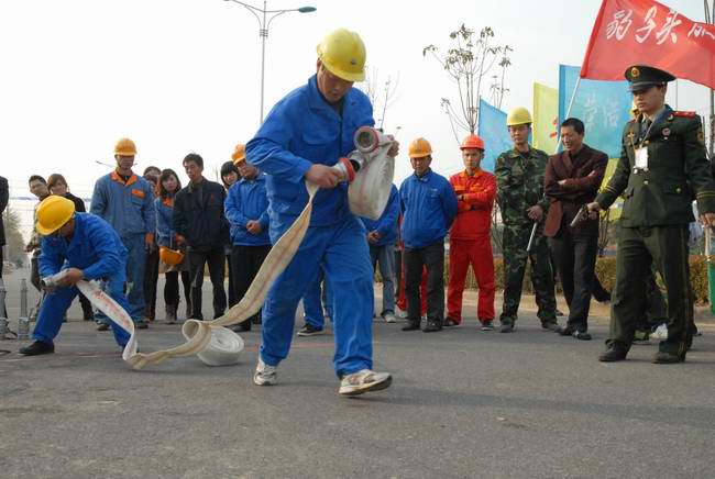 11月9日下午,江苏泗阳经济开发区“荣浩杯”消防技能比赛在开发区管委会办公大楼门前广场举行。泗阳县荣浩天然气发展有限公司、江苏海欣申禾纺织股份有限公司、江苏千仞岗服饰有限公司等开发区19家规模以上企业代表队参加比赛。副县长、生态科技产业园党工委书记顾金成出席活动。