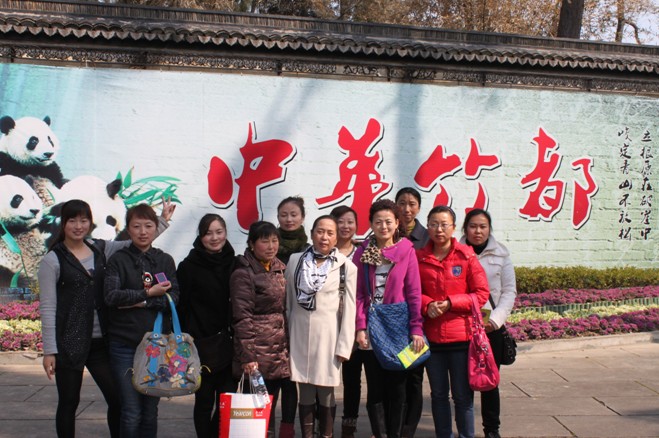 图一:为女职工在中华竹都前合影留念