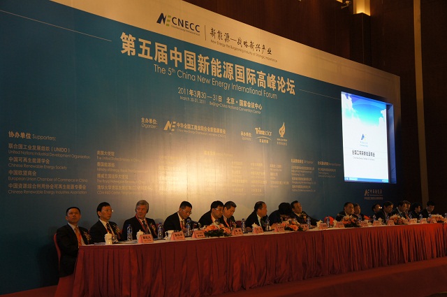 2011年3月30-31日,由全国工商联新能源商会主办的“第五届中国新能源国际高峰论坛”在北京国家会议中心隆重举行。会议秉承2010年9月8日国务院常务会议通过的《国务院关于加快培育和发展战略性新兴产业的决定》之精神,围绕“新能源——战略新兴产业”的主题,探讨了中国新能源产业发展之路。全国人大原副委员长、民建中央原主席成思危、全国工商联副主席宋北杉等领导出席开幕式并发表重要讲话。国家能源局、商务部、国家科技部、人大环资委、国家住建部、电监会、国家开发银行、联合国工发组织等政府部门领导。余义伟董事长应邀出席本次会议,余义伟董事长被全国工商联新能源商会选为常务理事,总经理助理冯春强陪同出席此次峰会。