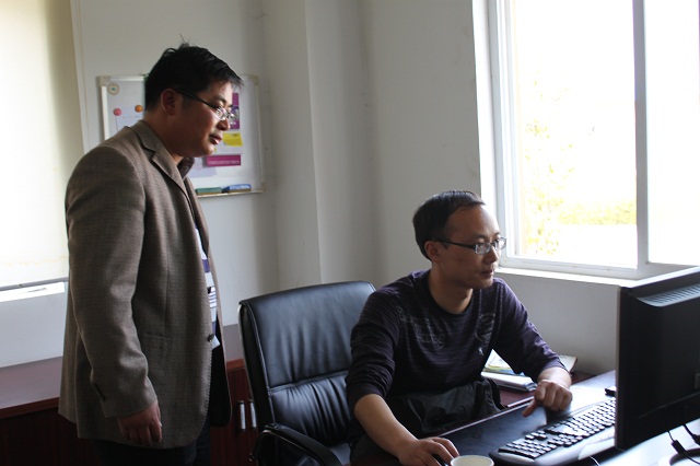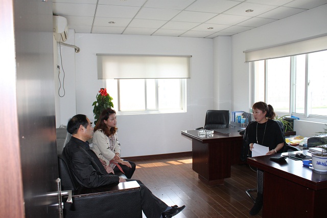 图二:为江苏荣浩投资公司副总经理冯春祥、财务总监王小方、办公室主任傅大华等领导听取工作汇报;