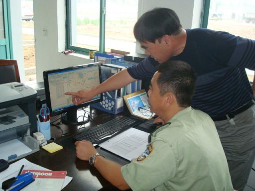 2011年7月7日上午,宿迁市交通局运管处货运科张海将科长、吴军主任,在泗阳县交通局运管所朱国庆所长和陈鑫主任的陪同下,莅临江苏中海能源运输有限公司检查指导工作。张科长着重检查了道路危险品运输车辆的调度台账、行车日志登记台账和对驾驶人员安全教育培训的记录台账,强调了GPS系统实时监控的必要性和重要性。泗阳县交通局运管所朱所长现场对GPS监控系统操作进行了指导、演示。