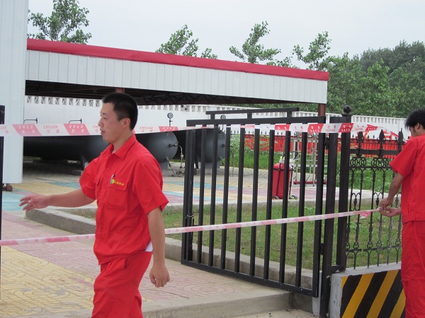 为了进一步强化员工消防安全教育,提高抗击突发事件的应变能力,能够迅速有组织的安全疏散,掌握正确使用灭火器以及火灾应对的方法,在集团公司领导的关心支持下,泗阳荣浩管输天然气有限公司在2011年7月12日下午3时,在加气母站举行了一场针对压缩机房内顺序控制柜突发火灾的消防演练。按照“消防演习方案”的相关要求,由公司副总经理胡大成担任消防演习总指挥。安全运行部全体人员参加了此次演习活动。