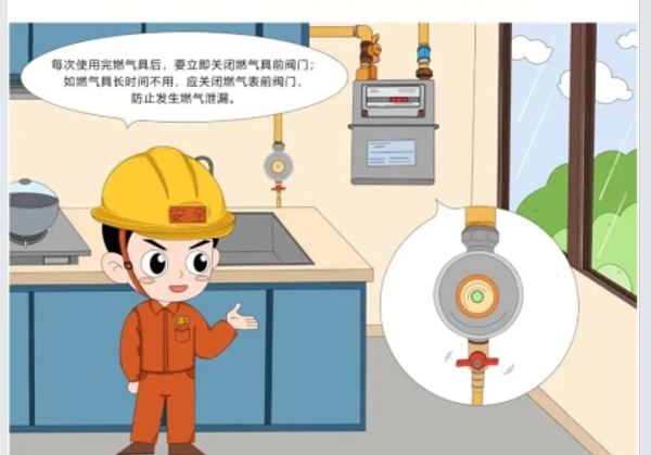 每次出门必自问:“燃气阀关了没?”家人要经常互相提醒,使用燃气时不能离人,做完饭或离开厨房时别忘记关掉燃气灶开关、燃气阀门。